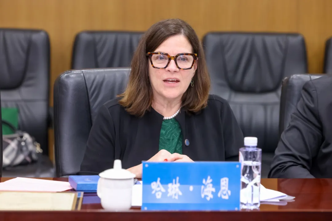 哈琳·海恩女士對南京審計大學在四十余年辦學歷程中取得的杰出成績表示祝賀,并細數兩校合作二十年來取得的豐碩成果,對南京審計大學在其中發揮的杰出作用表示感謝。她表示,期待進一步加強雙方的合作,共同促進人才培養和科研水平的提升。