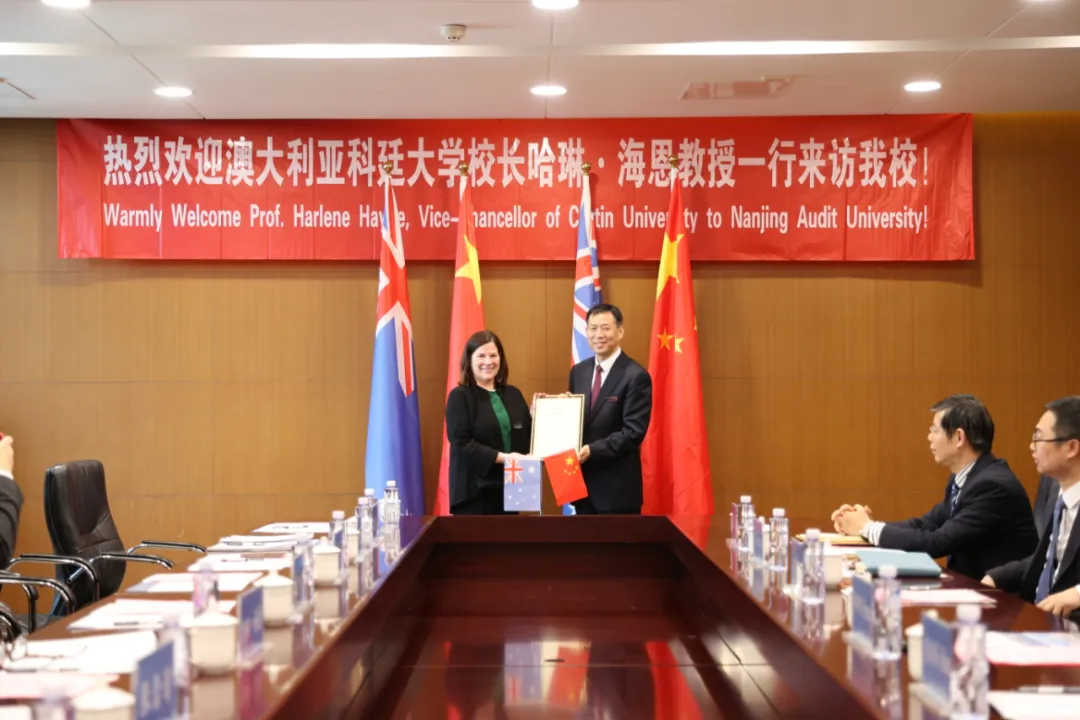 4月22日,南京審計大學中澳國際化教育高質量發展論壇暨中澳合作項目校友聯誼會成立大會舉行,澳大利亞科廷大學校長哈琳·海恩、副校長張嘯天、副校長張雪影一行到訪我校。當天下午,校長董必榮會見來賓,副校長李乾文,黨委宣傳部、會計學院、教務處、國際合作與交流辦公室等相關部門負責人參加會談,會議由李乾文主持。