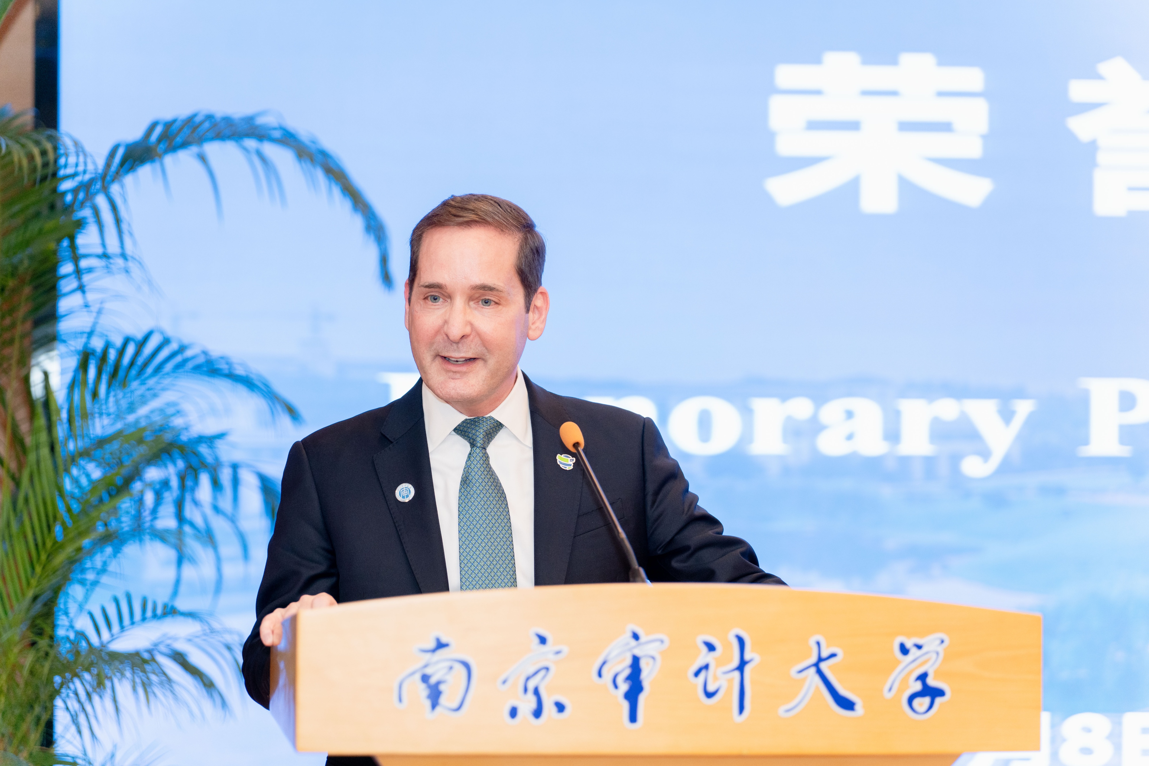 董必榮在致辭中代表全體師生向安東尼·普耶茲先生受聘擔任我校榮譽教授表示感謝。他指出,近年來南審與包括聯合國系統在內的多家國際組織、行業組織建立了廣泛的合作關系,與國際內部審計師協會友誼深厚。安東尼·普耶茲秘書長及沈立強秘書長一行的訪問,為我們三方的友好關系與交流合作開啟了新篇章,同時也為南審師生帶來了國際內部審計領域的最新理念、寶貴經驗和寬廣視野。希望安東尼·普耶茲的加入為南京審計大學的教學、科研和國際交流帶來新的機遇和動力,為南審師生開啟一扇通向國際內部審計前沿的窗戶,促進雙方在學術領域的深度交流與合作。