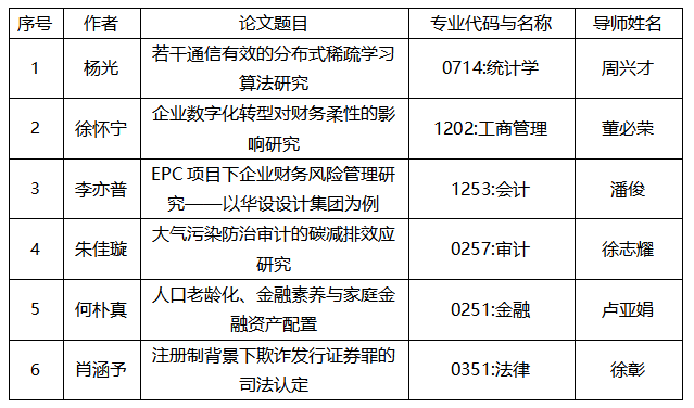 根據《關于開展2024年江蘇省優秀博士碩士學位論文評選工作的通知》(蘇教辦評函〔2024〕12號)文件精神,經個人申報、學校推薦、省教育廳組織專家評議,我校共有6篇碩士學位論文入選(學術學位碩士學位論文2篇、專業學位碩士學位論文4篇)。現予以公示,名單如下: